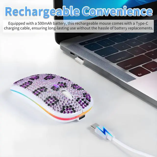 ^^ **Rechargeable Convenience: ** Equipped with a 500mAh battery, this rechargeable mouse comes with a Type-C charging cable, ensuring long-lasting use without the hassle of battery replacements.