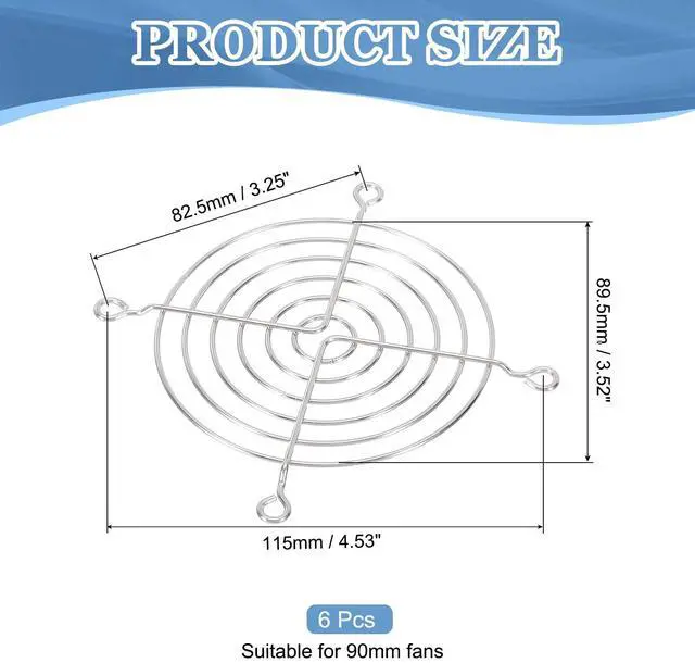 Hole Distance: 115mm / 4.53 inchSuitable for 90mm fansAdvantageThe Fan Grill offers a safety feature by preventing accidental contact with the rotating fan. Its well-designed finger spacing allows for optimal airflow while effectively keeping fingers and other objects away from the fan. The grill cover also helps to reduce dust accumulation on the fan blades, thus improving the overall efficiency and longevity of the fan. InstructionInstalling the Fan Grill is quick and easy. Simply place it over the fan and secure it in place using the screws (screws not included). The design ensures a secure fit and hassle-free installation, allowing you to enjoy life and know that your fan is protected.