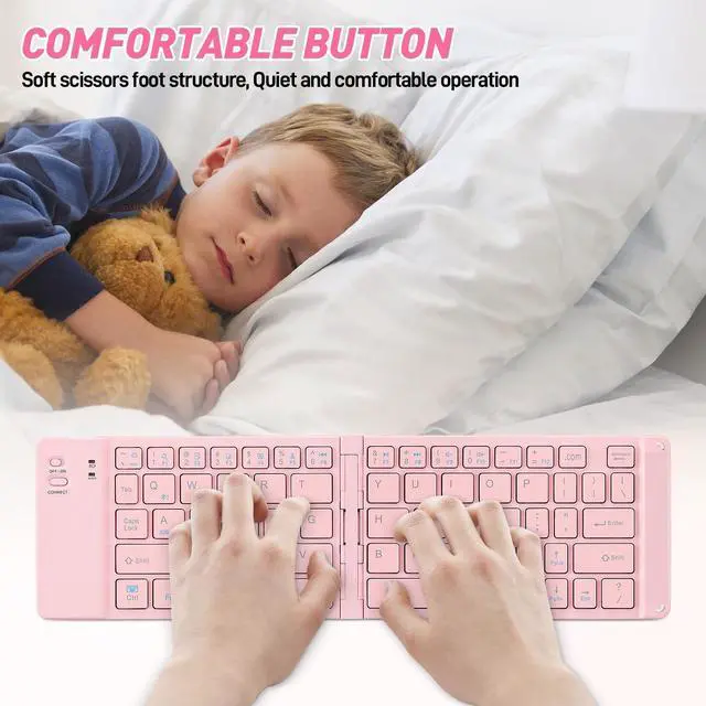 mode: press and hold FN, then press 1, and then press and hold for 3 seconds, the blue light flashes, and bluetooth device 1 enters the seached state on the device side-open the system settings-turn on bluetooth -search and add. ^^ the portable folding keyboard mouse combo supports connect up to 3 devices mode switching; support switching back and forth across devices, connect 5.0 version to hibernate and wake up faster; with high frequency equipment switching, the keyboard works smoothly; ^^ Multi-System Compatible, this folding keyboard mouse combo supports connect up to 3 devices, Its widely compatible with Windows, Android, iOS, Mac OS, perfect for laptops, desktops, Phones and more devices, the low-profile scissor keys give you excellent feedback and stability, you can type the key quietly.