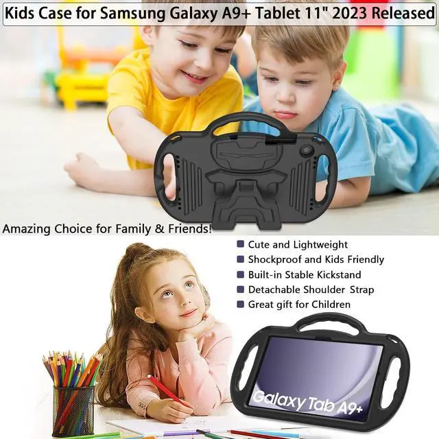 Perfect CompatibilityONLY for 2023 Release Samsung Galaxy Tab A9 Plus 11 Inch (SM-X210/ X216/ X218). NOT fit for ANY other models. (Note - Be sure to check your model number in the tablet settings before purchase). ^^ Cute DesignGalaxy tab a9 plus case for kids, designed with unique robot kickstand, prop up the stand anytime needed, start hands-free viewing in a comfy angle. Plus come in a series of enjoyable vibrant colors, fun and functional, amazing gift for children. ^^ Shoulder Strap & Built-in HandlesGalaxy tab a9 plus case comes with detachable shoulder strap and handles-all-around, easy to carry, travel-ready, super convenient while on the go.