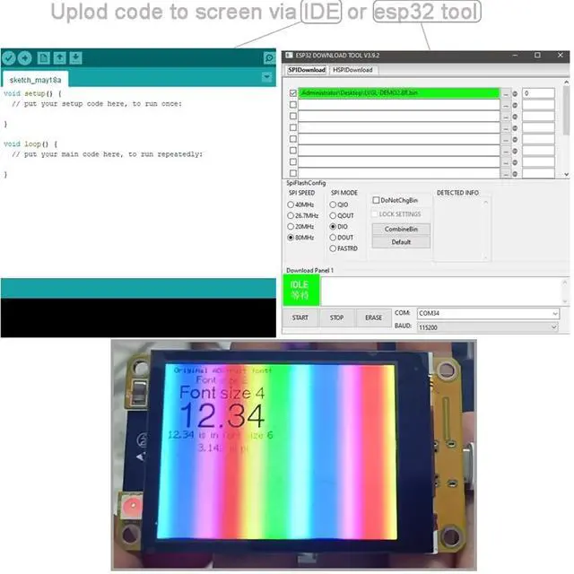 Combination of ESP-32 ESP32 module + 2.4 inch display capacitive touch (not resistive touchscreen). ^^ Upload code to the 2.4 inch esp32 touchscreen via IDE or esp32 flash tool. ^^ Use DHT11 temperature humidity sensor on P3 connector 4pin 1.25 mm. CN1 IO connector type is also 4pin 1.25 mm. ^^ Support TF card (smaller than sd card), no more than 32G. ^^ Comes with 1pcs esp32 tft lcd 2.4 inch, 1pcs dupont female to 1.25 mm wire, 1pcs 2pin 1.25 mm cable (designed for the P4 speaker or P5 battery interface).