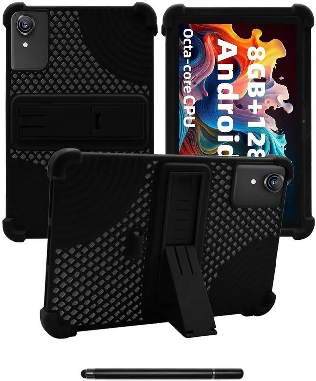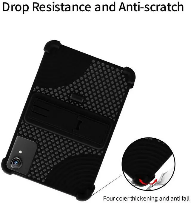 for Rebecco K70/Rebecco Z30 10 inch Tablet Case,BOVUGAC Soft Silicone with Capacitive Pen,Heat Dissipation Design, Adjustable Stand, Shockproof, Kids Friendly for Rebecco 10 inch Tablet(Black)