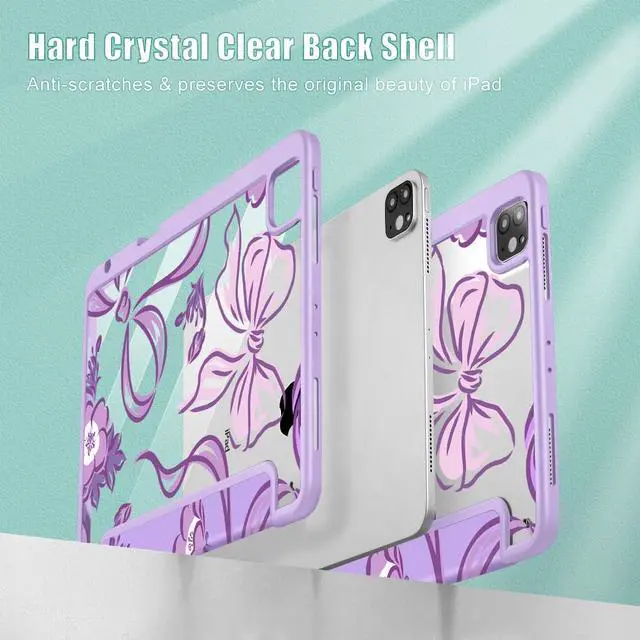 Mektron for iPad Pro 12.9 M2 2022 Case Compatible iPad Pro 12.9 inch 6th/ 5th/ 4th/ 3rd Gen Cover 2021-2018 Tablet Case with Shockproof Clear Back Cover for 12.9-inch iPad Pro, Flowers-Bows-Purple