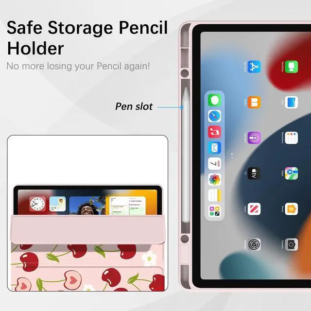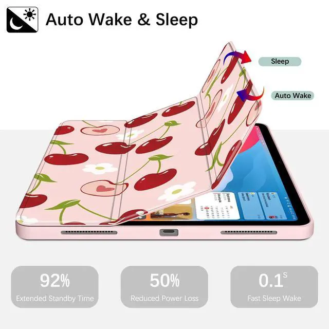 [Compatibility] - Lornpa Case for iPad (A16) 11th generation 11-inch 2025 (Model: A3355, A3356), iPad 10th generation 10.9 -inch 2022 (Model: A2696, A2757, A2777). It is Not compatible with any other devices. Please check your iPad on the back bottom to confirm the "AXXX" model number before purchasing. ^^ [Superior Protection] - Made of synthetic PU leather and shockproof flexible soft silicone, Ultra slim and lightweight design adds minimal bulk while offers your device great protection, with cute cherry pattern print on it. Suitable for children kids girls boys women ladies. ^^ [Auto Wake/Sleep] - Built-in magnetic strip automatically wakes or sleeps the device when opening and closing the cover, protecting and prolonging battery life. ^^ [Pencil Holder] - Our Lornpa case not only protects your device but also features a dedicated Pencil holder. It makes sure your pencil is securely stored, and ready for note-taking, drawing, or navigating. (