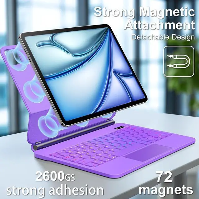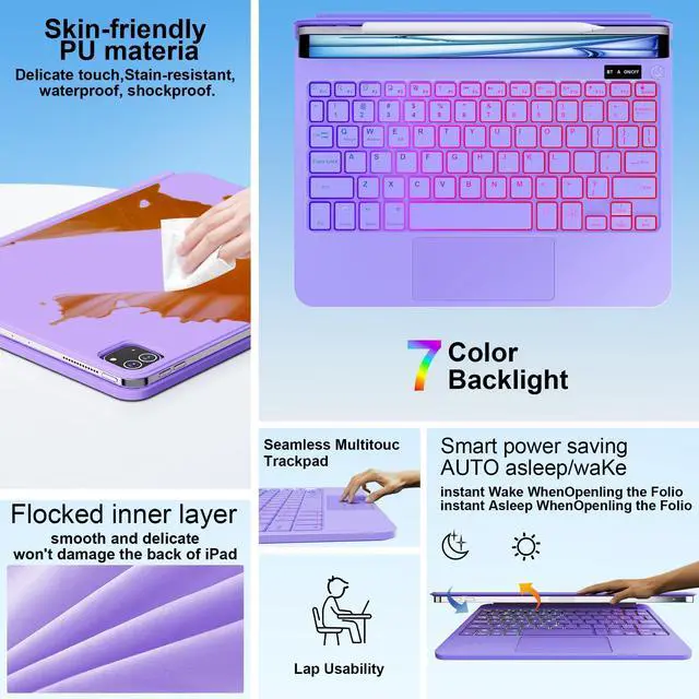 Air 11-inch (M2): A2902, A2903, A2904, 2022 iPad Pro 11-inch 4th Generation (A2435, A2759, A2761, A2762), 2021 iPad Pro 11-inch 3rd Generation (A2377, A2301, A2459, A2460), 2020 iPad Pro 11-inch 2nd Generation (A2228, A2068, A2230, A2231), 2018 iPad Pro 11-inch 1st Generation (A1980, A2013, A1934, A1979), ^^ 7-Color Backlit Keyboard Case for iPad 11th/10th GenFrom dawn to dusk, adapt effortlessly! Adjusting 7 backlight and 3 levels of brightness ensures clear visuals in every setting, enhancing your immersive experience.
