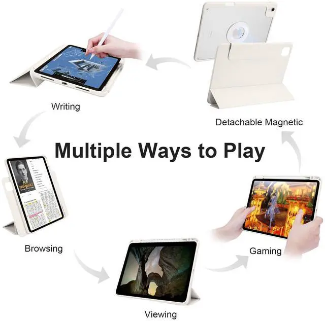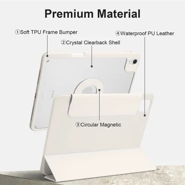 Note: It is Not compatible with any other devices. ^^ Detachable Magnetic StandFeaturing a robust magnetic cover that easily attaches to the back, transform your case into a stable stand with multiple viewing angles for both landscape and portrait modes. Perfect for gamingdetach it effortlessly whenever needed! ^^ Multi-angle AdjustmentThe smart tri-fold design enables you to switch between stable typing (60) and comfortable video-watching (30) modes. Enjoy hands-free convenience that enhances both productivity and leisure time. ^^ Premium MaterialsMade from top-quality waterproof PU leather on the outside and anti-scratch microfiber on the inside, this case features a double-layer back shell with a clear acrylic hardshell and PU leather lid. In order to improve the anti-drop performance of the protective shell, we used comprehensive anti-drop materials, so the product is relatively heavy.