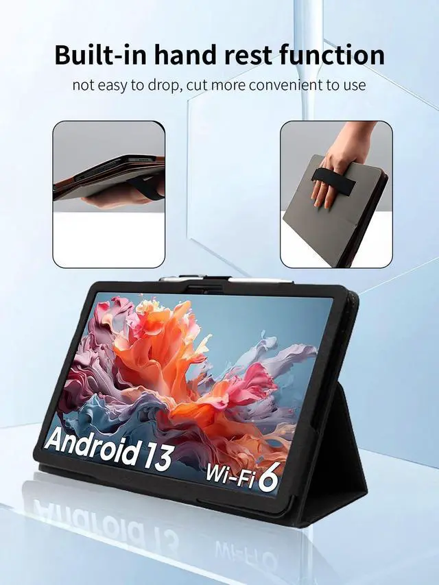 Case for Apolosign EM101A Android 14 Tablet 10 inch 2024 New,Leather Slim Folding Stand Cover with Hand Strap Magnet for Men Women Full Protection,Black.