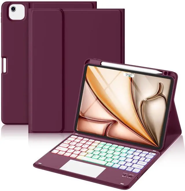 Hamile for iPad Air 11 Inch & Air 5th 4th Generation Case with Keyboard - Multi-Touch Trackpad, 7 Colors Backlit, Detachable Stain Proof Folio Cover for iPad Pro 11-in 4th 3rd 2nd 1st Gen, Mulberry