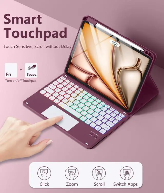 • Multi-Touch Trackpad: This for iPad Air 5th generation case with keyboard features a smart trackpad for quick and easy operation of your tablet. Fully supports multi-touch gestur