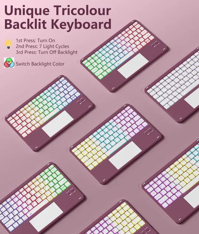 Colors Rainbow Backlit Keyboard: Keyboard for iPad Air 11 inch have 7-color rainbow backlight that can display three colors simultaneously. You can switch between static rainbow backlight mode and dynamic breathing light mode to make typing more fun and atmospheric. With three adjustable brightness levels, you can turn off the backlight when it is not needed ^^ Detachable