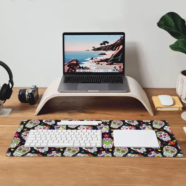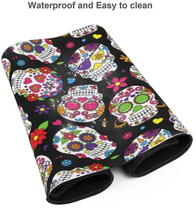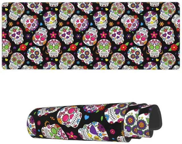 Famame Laptop Mouse Pad Mexican Floral Sugar Skulls Desk Mat with Stitched Edges 31.5X 11.8 inch Non-Slip Large Keyboard Rubber Writing Table Mat for Office Home