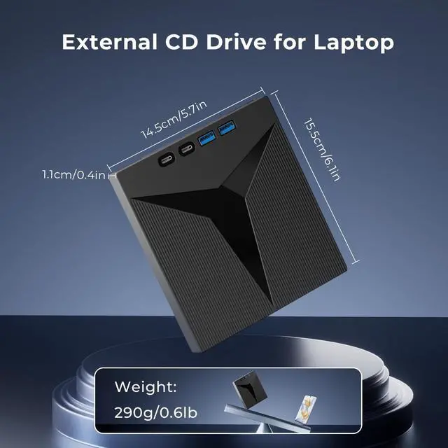 Play: This external CD/DVD drive supports two connection methods (USB 3.0 is the preferred option). Simply plug the data cable into your device's portno manual driver installation required. The system automatically detects and configures the drive, making it instantly ready for use. (The cd reader for laptop includes a separate power cable; we strongly recommend using both cables simultaneously. )