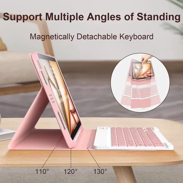 Perfect Fit & Wide CompatibilityThis iPad keyboard case is specially designed for iPad 11"/ 10.9" (4th-7th Gen 2020-2025), including models A2072/A2588/A2902/A3266 etc. The iPad case with keyboard features precise cutouts for speakers, cameras and charging ports, offering full functionality while protecting your device. ^^ Detachable Magnetic Bluetooth KeyboardThe Bluetooth keyboard of the iPad is securely connected by a magnet and can be easily removed when not in use. Enjoy a comfortable experience with responsive buttons, 10 meter wireless range, and USB-C rechargeable battery (25+hours). This iPad keyboard cover will enhance your work efficiency ^^ 3-Stage Adjustable Stand & Pencil HolderOur iPad case comes with a stand and keyboard, providing three optimal perspectives for typing, streaming, and drawing.
