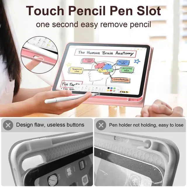 The built-in iPad pencil holder can securely store Apple pencils, preventing them from being easily lost. ^^ Ultimate ProtectionThis iPad case with keyboard features a shockproof PU leather shell and soft silicone interior to protect your device from drops and scratches. The slim iPad keyboard case adds minimal volume, and the snug border provides 360 comprehensive protection ^^ Complete