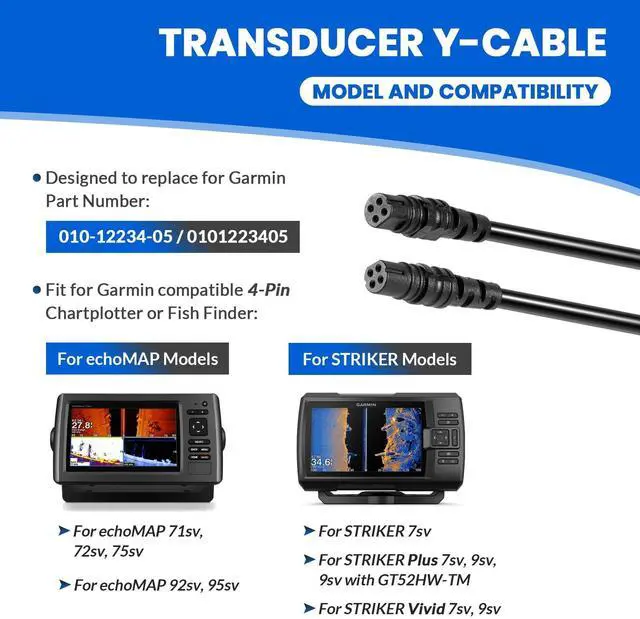 Fish Finder: For echoMAP 71svFor echoMAP 72svFor echoMAP 75svFor echoMAP 92svFor echoMAP 95svFor STRIKER 7svFor STRIKER Plus 7svFor STRIKER Plus 9svFor STRIKER Plus 9sv with GT52HW-TMFor STRIKER Vivid 7svFor STRIKER Vivid 9sv
