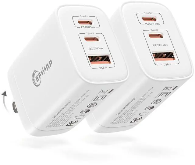 ^^ Wide CompatibilityWorks with 98% of electronicssupports PD 3.0 /QC/PPS, and other fast-charge protocols for phones, tablets, laptops, and accessories. ^^ What You GetIncludes EFIIIAP 65W Charger 2PCS (GaN III Series), welcome guide, 24-month warranty, and friendly customer support. Upgrade your charging experience today!