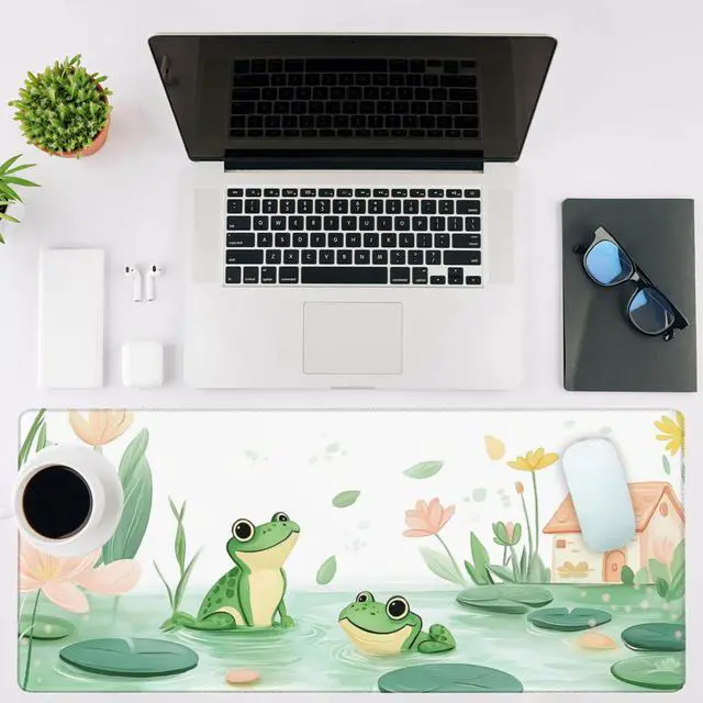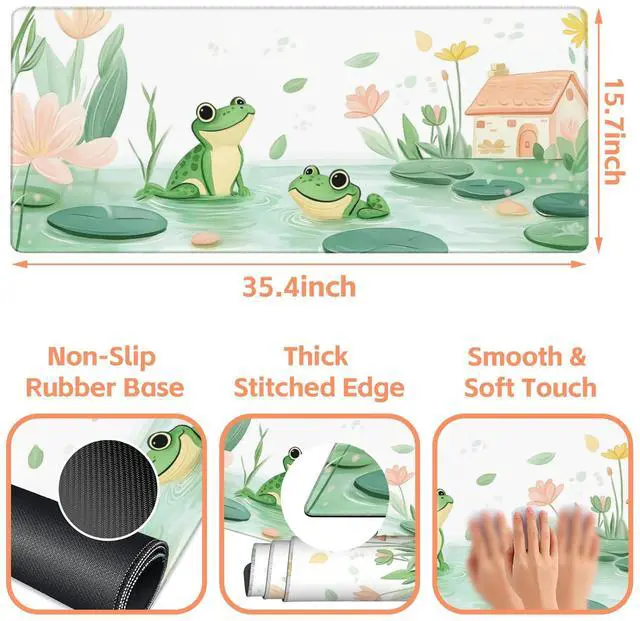 NIYLYNSYN Mouse Pad Large Cute and Whimsical Frogs Non-Slip Gaming Desk Mat with Stitched Edge Laptop Keyboard Desk Pad for Work Home Gaming (35.4 x 15.7 Inches)
