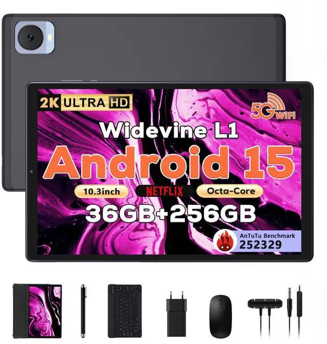 Stream Netflix HD flawlessly via 5G/ 2.4G hz WiFi with Widevine L1 certification and UFS 2.1 tech. The 8000mAh battery outlasts marathon binge-watching, while LPDDR4X tech optimizes power like a proideal for gaming tablets and heavy users. ^^ Your 24/7 Office Sidekick Transform into a laptop with the included 2-in-1 keyboard, mouse, case, and stylus. Jot notes with precision during Zoom calls, then crunch Excel data like a PC. FCC/CE/GMS certified, it supports 2K projection, real-time translation, and 3.5 mm wired audio for post-work movie nights. Googles homework grader even simplifies parent-teacher conferencesa true electronics tablet for adults.