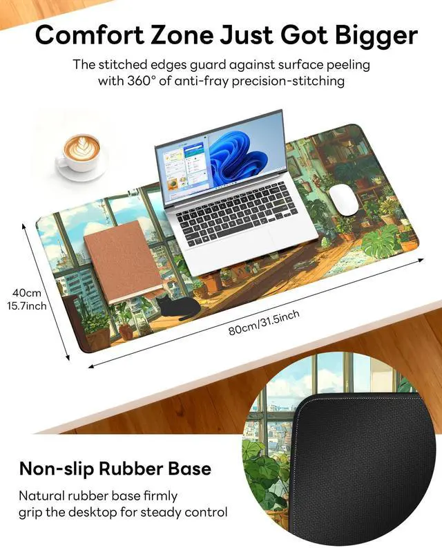 Non-slip Rubber Base: The soft & thick rubber backing has a dense non-skid texture, keeping your desk mat firmly in place. This oversized mouse pad stays uniformly flat on imperfect surfaces. Immerse yourself in work or games without annoying mat movement ^^ Easy to