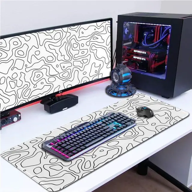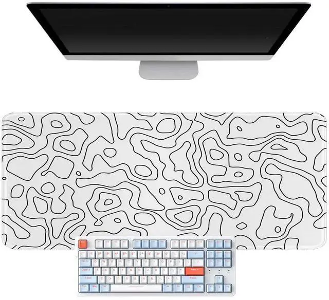 llsxi White Topographic Mouse Pad,XL 11.8x31.5 inch Large Gaming Mouse Pad,Non-Slip Base Desk Mat,Extended Game Mousepad Keyboard Pad for Computer,Keyboard,Home,Office