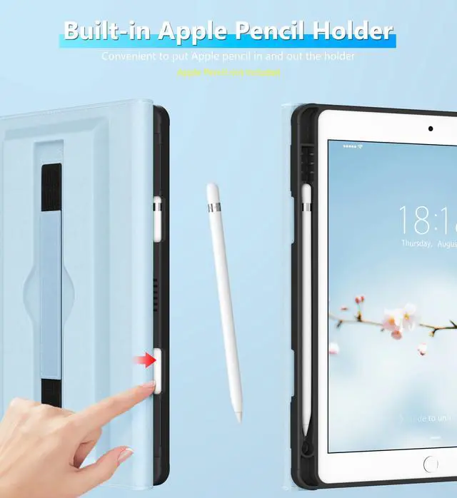• Built-in pencil holder, Pencil holder securely carries and protects Apple Pencil wherever you go. Please Note: Apple pencil not included