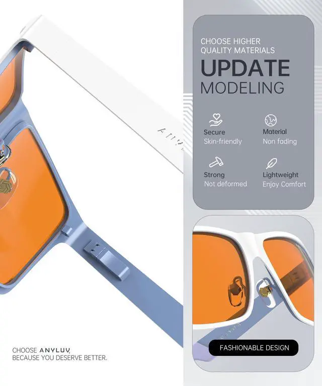 ^^ Stylish Blue Glasses: These computer glasses combine modern and classic design elements for any occasion. A low-key yet elegant design style can better highlight your temperament. The computer glasses feature square slim-fit frames and an ANYLUV logo decorative temple design, presenting a refined and fashionable style. Whether you are at work or in your daily life, men's anti-blue light glasses can add a touch of fashion to your appearance and showcase your unique charm ^^ Brand Customer Service & Gift Package: This type of blue ray glasses come with an exquisite triangular folding box, which will be a great gift for your family and friends! ANYLUV attaches great importance to product quality and customer satisfaction. Each ANYLUV customer can enjoy after-sale brand service for our blue screen glasses.