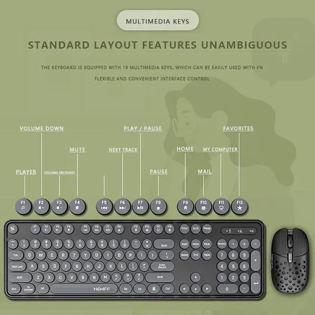 HIGH FOOTED KEYS: keyboard with round keycap design, high footed key position with small rebound and low noise.