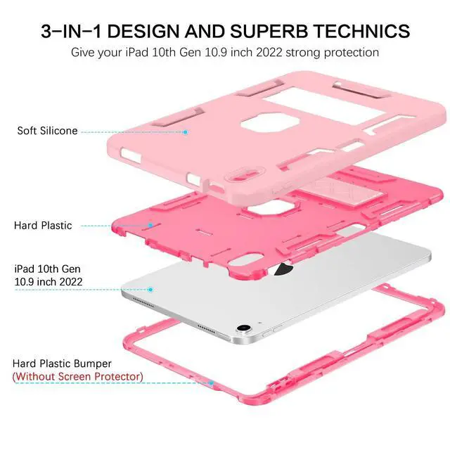 Generation 2022 (Model: A2696 A2757 A2777)Not Compatible with Other ModelsUpdated & Stylish Design Love the feeling of a case free iPad 10th in your hands? This updated slim iPad 10 case fits the bill. Its simple, thin and light, add no bulky to your tablet. Its soft silicone cute back cover is neat with a soft touch, doesn't catch on the fingerprints easily, keeping a nice looking for your iPad 10th 2022. Apple Pencil Holder & Handy Kickstand Its snug fit with a handy kickstand which is a great bonus when you are watching a movie, face-time, or just need to have the iPad/app in a landscape mode. It also has a pencil holder for you so that you can have your Apple Pencil 1st around. (Pencil NOT included) Durable & Protective Being frustrated by endless dusts on the clear cover? This compact design iPad 10th generation case doesn't pick up dusts easily, giving you a neat touch and clean grip. With fine workmanship and premium material, this cute iPad case is durable enough for longtime usage. Packaged 1 X Case for iPad 10th Gen 2022 10.9 -inch (iPad and screen protector not included)