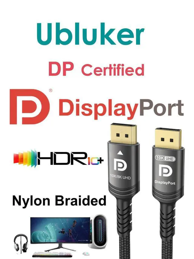 Certify Displayport Cable: Ubluker DisplayPort cable has multiple powerful functions and technologies, including 54 GBPS bandwidth, UHBR, HBR3, 8K 60Hz resolution, 12bit color depth, HDR technology, multi-transmission, DSC display flow compression, etc ^^ Meeting High