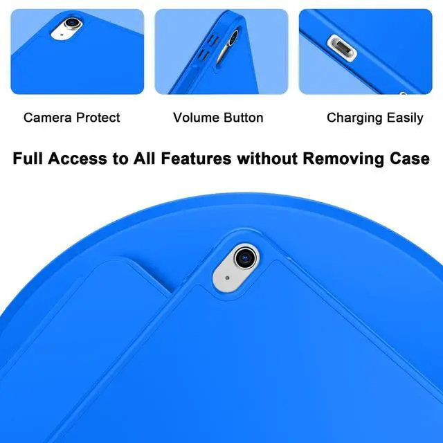 ToaPoia Case for iPad (A16) 11 Inch 2025/iPad 10th Generation 10.9 Inch 2022, Slim Trifold Stand Protective Cover with Pencil Holder and Soft TPU Back,Support Auto Sleep/Wake (Medium Blue)