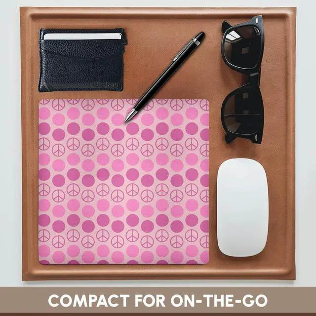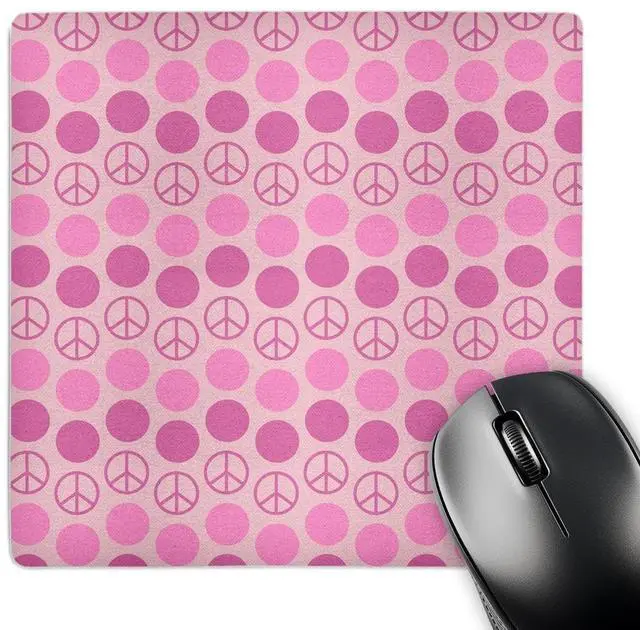 Pink Peace Signs inspirational art Mouse Pad is 8" x 8" x. 25" and is made of heavy-duty recycled rubber. Matte finish image will not fade or peel. Machine washable using a mild detergent and air dry.