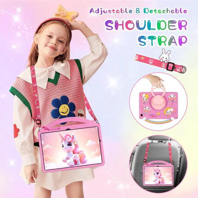 Cute Rainbow Unicorn Design: This Galaxy Tab A9+ cover features 3D unicorn, rainbow, and star details in vibrant hot pink, making this kids tablet case irresistibly charming to girls and children who adore fantasy-inspired accessories. Lightweight, flexible, and easy to install/remove. The smooth silicone surface is comfortable to hold and easy to cleanideal for kids daily use ^^