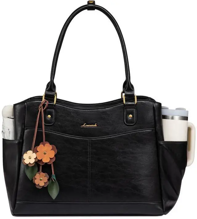 LOVEVOOK Laptop Bag for Women, 15.6inch Original Vintage Work Tote Bag Computer Office Teacher Bag with Large Cup Holder, Black
