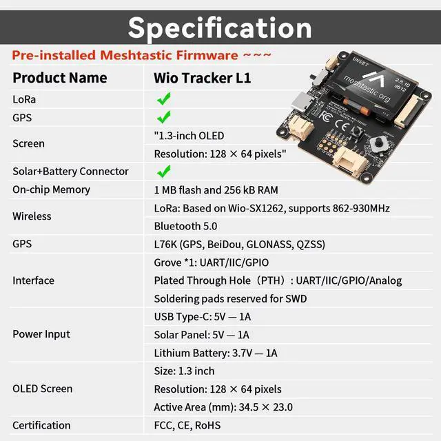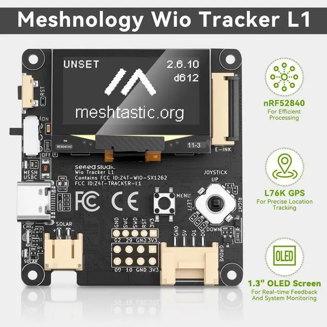 ^^ Real-time Monitoring: Featuring a vibrant 1.3 -inch OLED display, the Wio Tracker L1 offers enhanced visual feedback for system monitoring and user interactions. Track vital data and receive live updates with ease, making it an excellent tool for developers and hobbyists alike.