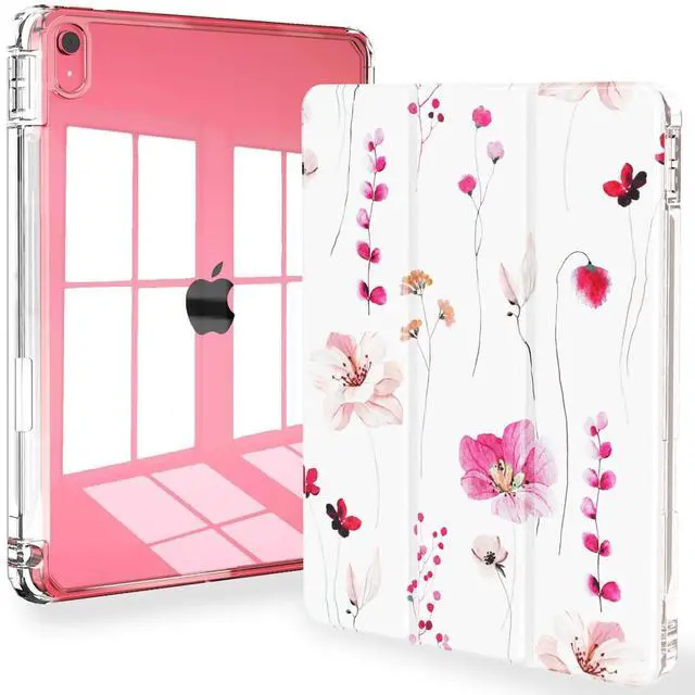 Feams for iPad A16 11th Generation 11 Inch Case 2025, iPad 10th Generation 10.9 Inch 2022, Slim Clear Back Cover with Pencil Holder & Auto Sleep, Pink Flowers