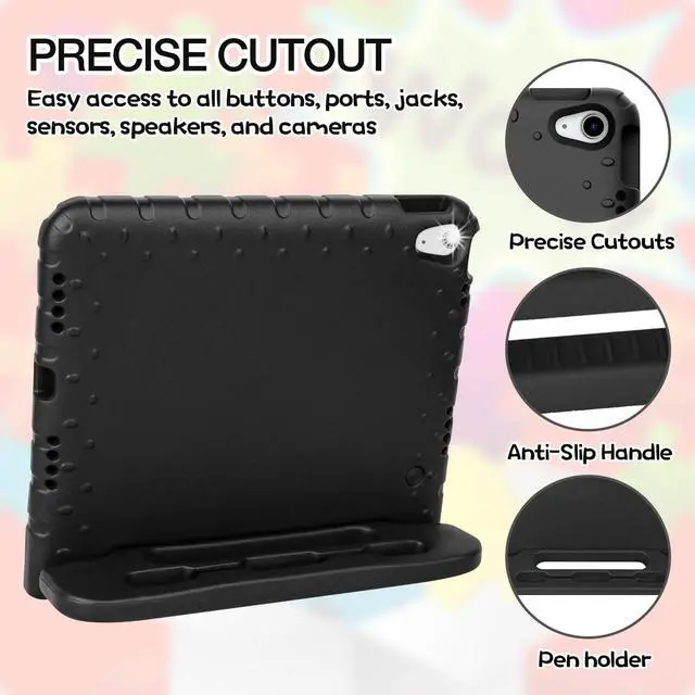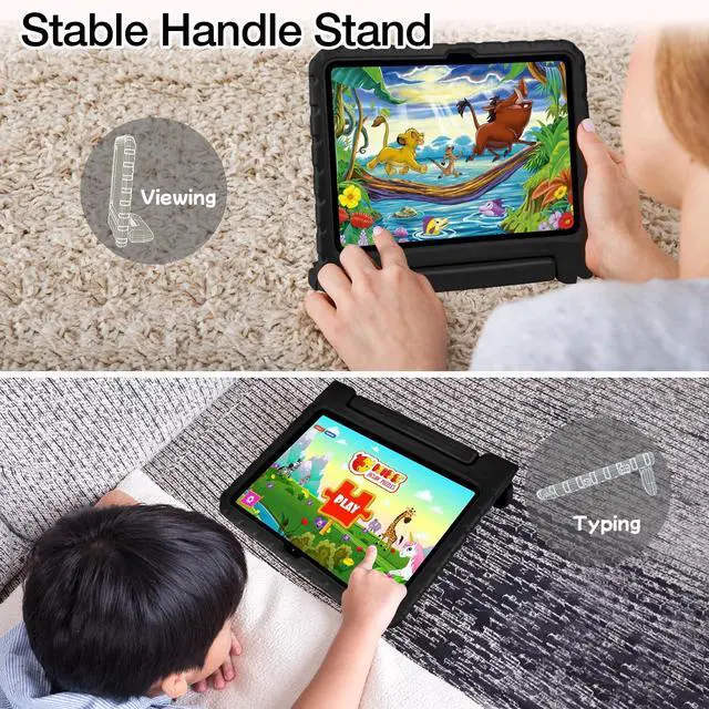 ^^ Kid-Friendly: Our iPad A16/iPad 10th generation case for kids comes with an anti-slip handle stand, made from durable, lightweight, eco-friendly EVA foam. It's easy for kids to carry, can double as a stand when needed, super convenient.