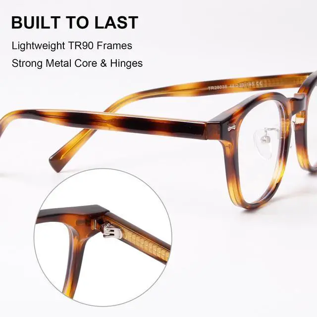 Women Men: Lightweight, tough TR90 frames, shatterproof, corrosion-resistant, with reinforced metal hinges and internal metal core for unbeatable strength, shape retention, and comfortable for long wear. The tortoise shell frame delivers retro elegance, pairing with casual or dressy looks, ideal for work, gaming, or daily screen time. ^^ 99% Blue Light Blocking +