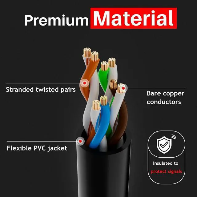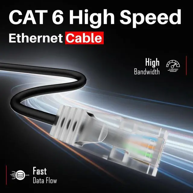 1Gbps & 550MHz High Speed: Cat 6 performance at a Cat5e price but with higher bandwidth. Cat6 ethernet cable supports 1Gbps data transmission and bandwidth up to 550MHz. It can provide you with stable and ultra-high network speed in accessing the internet, browsing videos, playing games, uploading or downloading files and more.
