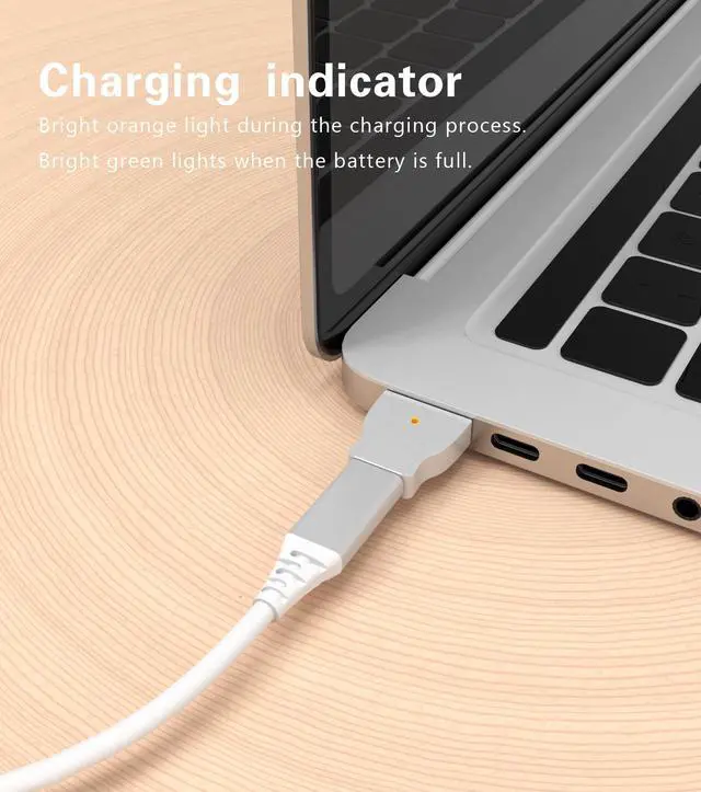 USE RETRICTIONS: The AIR series must be used with PD65W or more charger; the PRO series must be used with PD85W or more charger. If the power charger is not enough, it will not be able to charge stably ^^ UNIQUE APPEARANCEThe typeC female to magnetic 2 adapter with a unique shape, the appearance full of design sense, brings a unique modern experience. ^^ CHARGING STATUS AT A GLANCEThis MacBook adapter has a charging indicator light, which lights amber when charging and turns green when fully charged. ^^ COMPATIBLE MODELSThis magnetic suction adapter is suitable for magsafe 2 notebook models, that is, notebook models issued from MacBook2012 to 2017. Please note whether your model fits. ^^ LIGHTWEIGHT AND DURABLEThe shell of the adapter is made of pressed aluminum shell, which is light and durable. The quality of this MacBook adapter is guaranteed for 12 months.