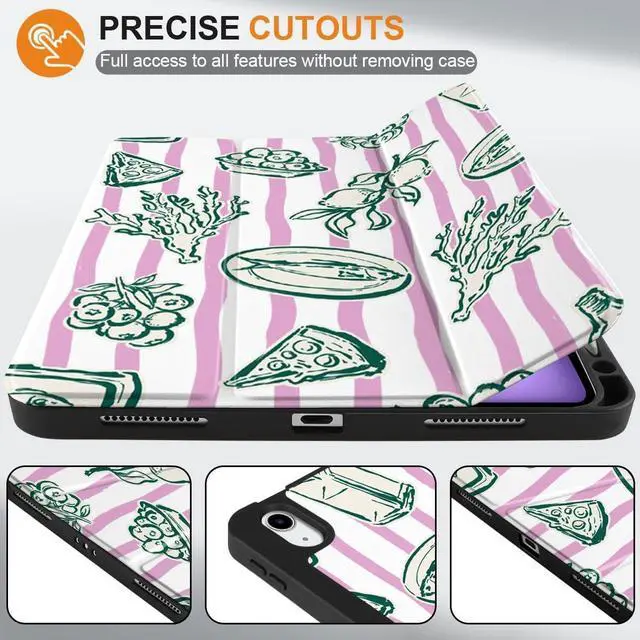 Generation 10.9 -inch (2020) (Model: A2316, A2324, A2325, A2072). ^^ Full Protection -- Constructed with a premium PU exterior, microfiber lining, and soft TPU back cover, offering complete protection against shocks, drops, and scratches. ^^ For Apple Pencil Charging -- Features a built-in pencil holder and adapter slot, designed for charging and pairing with the 2nd Gen Apple Pencil. Keep your Pencil and adapter easily accessible and conveniently carry them with your device. (Case only; other accessories not included. ) ^^ Professional Design -- The inner layer features a honeycomb grid pattern that dissipates over 80% of heat, extending the iPad's lifespan and improving shock absorption. The multi-layered painting process ensures durability and maintains an attractive appearance under normal use. ^^ Convenient Function -- Features sensitive Auto Wake/Sleep for energy savings. The slim, lightweight tri-fold stand offers both viewing (65) and typing (30) angles. Solid construction without bulk, and precise cutouts provide easy access to all buttons.
