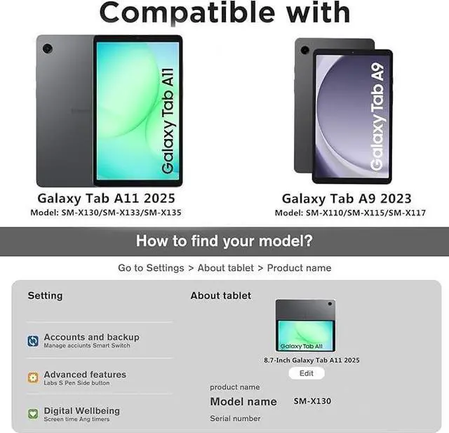 [Compatibility] Specially designed for Samsung Galaxy Tab A11 8.7I nch 2025(Model: SM-X130/X133/X135), A9 8.7
