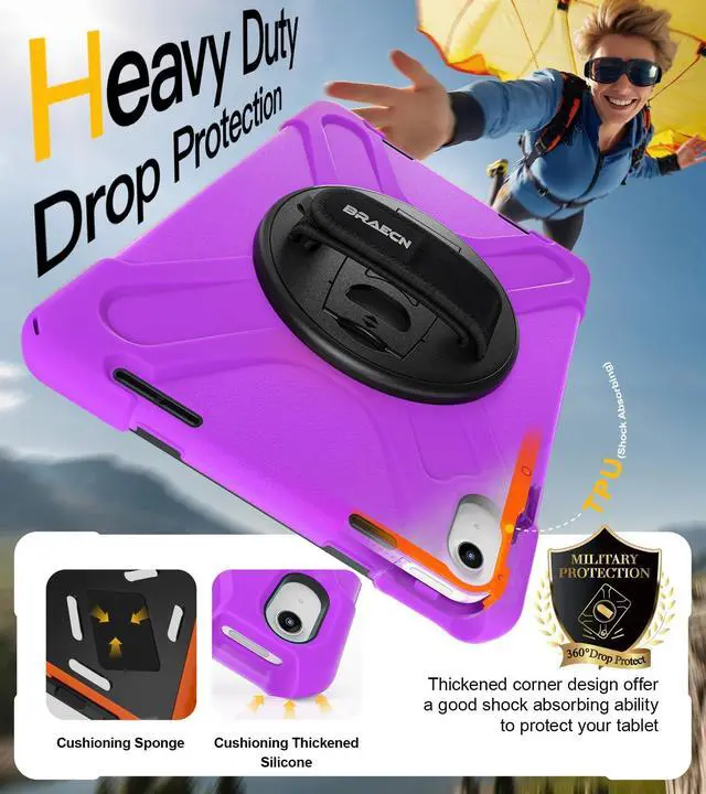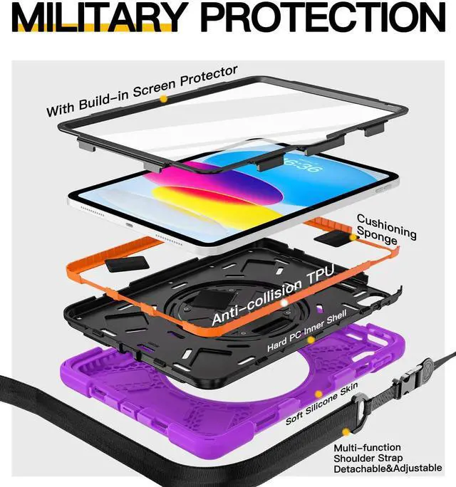 Handle/Stand & Shoulder Strap]: This ipad 11/ 10.9 inch case have a 360 rotation system that includes a kickstand and a hand strap, by rotating it, you can hold your ipad at any angle, by utilizing the swivel and the stand, you can support your ipad at multiple angles. The adjustable shoulder strap allows you to carry or hang your iPad at any time, so that you can provide more convenience in outdoor sports, traveling. ^^ [Screen protector and portable pencil holder]: The screen cover of this ipad 11th/10th 2025/2022 case has a built-in screen protector to fully protect your iPad. The back of case is equipped with a portable pen holder to securely stores your pen. ^^ [Precise