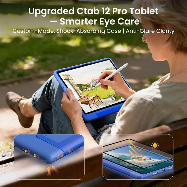 & Entertainment: Sketch, study, or relax anywhere with this 12-inch Android tablet. The 20001200 IPS display with a 16:10 ratio provides 20% more space for drawing, notes, and movies, while quad speakers enhance tutorials and streaming. A 4096-pressure active stylus delivers precise lines and smooth shading, with magnetic attachment and an anti-touch glove for a comfortable, interruption-free workflow ^^ Smooth Performance for