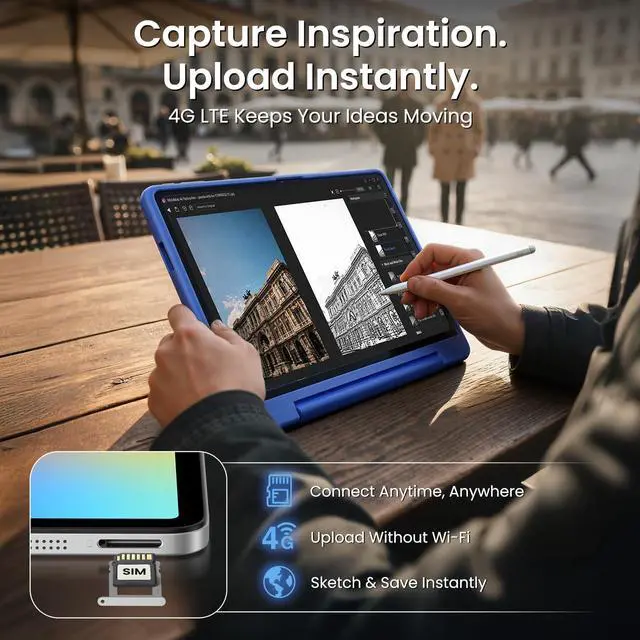 Mobile Connectivity: Supports 4G LTE Android tablet data connectivity with VoLTE support for compatible GSM carriers (such as T-Mobile), delivering stable mobile internet access for online study, browsing, streaming, and file uploads when WiFi is not available. Ideal as a SIM card tablet for students and creators on the go. (SIM card not included. LTE/VoLTE availability depends on carrier support and local network compatibility. ) ^^ A Thoughtful Gift for Students, Creators