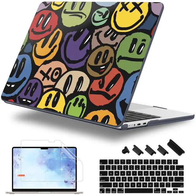 Lepeoac Case for MacBook Air 15 Inch 2025 2024 2023 Release M4 A3241 M3 A3114 M2 A2941, Hard Shell with Screen Protector & Keyboard Cover, Compatible with Touch ID, Happy Emoji