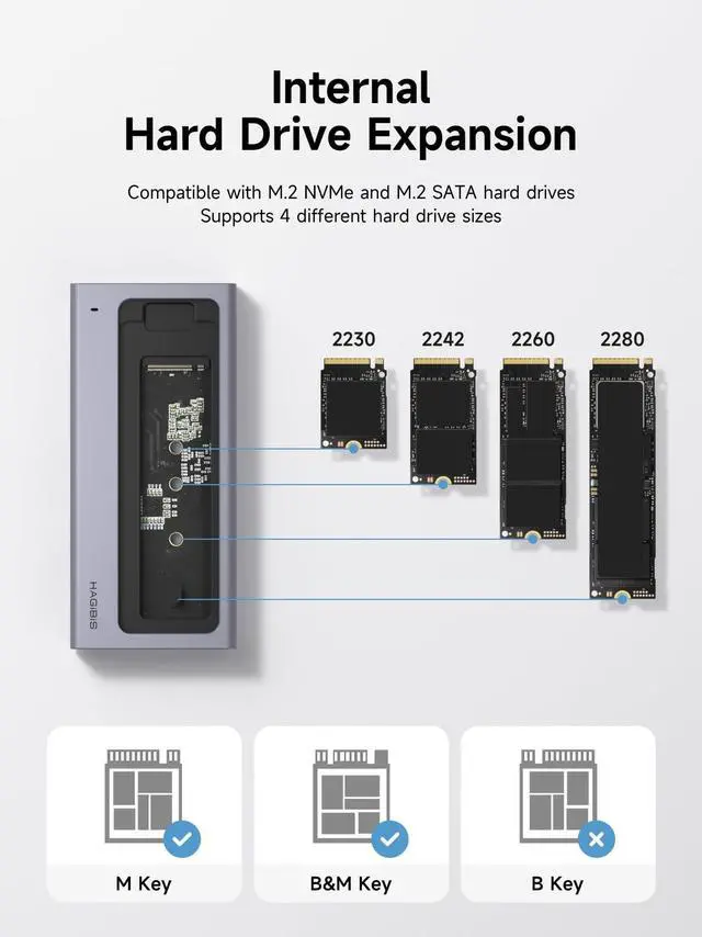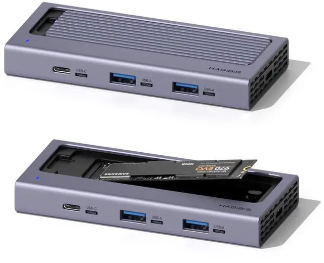Unique Design: Hagibis combines the M. 2 NVMe SATA Hard Drive Enclosure and Multi-functional USB-C Docking Station for MacBook, iPhone15/15 Pro/15 Pro Max, iPad Pro, Mac Mini, laptop ^^ 4 in 1