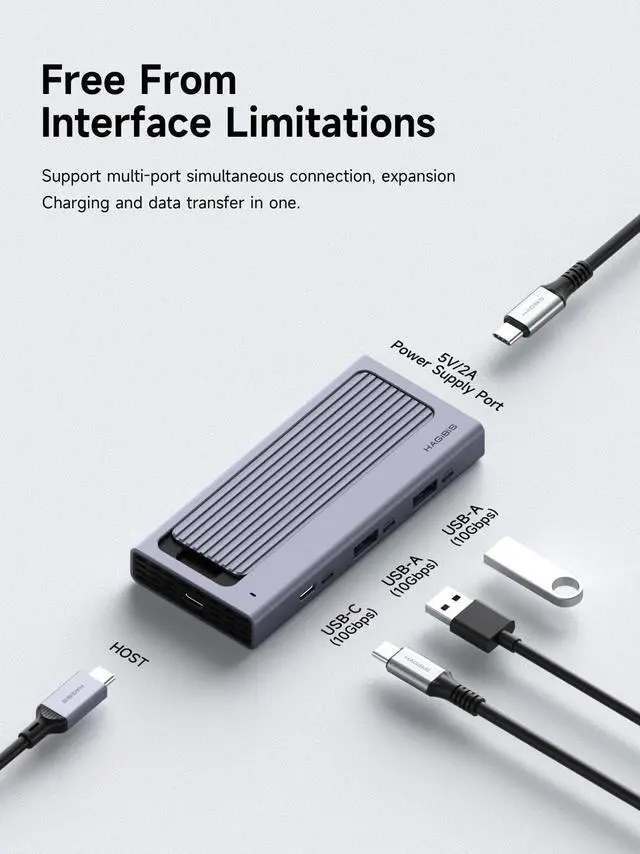 Multi-Function USB-C Hub: Extend the USB C port to 10Gbps 2*USB-A 3.1, 10Gbps USB-C 3.1 and 5V/2A Power Supply port for all your necessary needs ^^ Supports M. 2 NVMe and