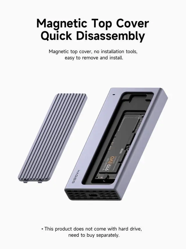 Play: Hagibis USB C to M. 2 SSD Case has MAGNETIC cover is very simple to install. Just slide the magnetic cover to open the lid, then plug your SSD into it, and then close the lid. Plug&Play for Windows 10/8/7/XP/Vista, Mac OS, Linux, Chrome OS ^^ Elegant Aluminum and