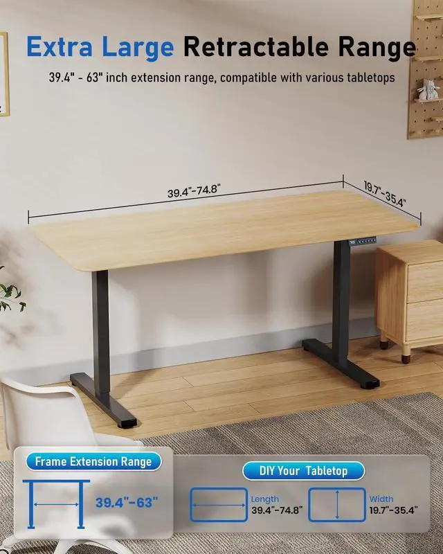 Reinforced Cold-Rolled Steel for Maximum StabilityBuilt from automotive-grade cold-rolled steel, this sit stand desk frame ensures exceptional structural rigidity, reduced shaking, and long-term durability. The strengthened dual-beam design and wider support wings deliver superior stability for desktops up to 74.8", making it one of the strongest frames for heavy-duty office use. I