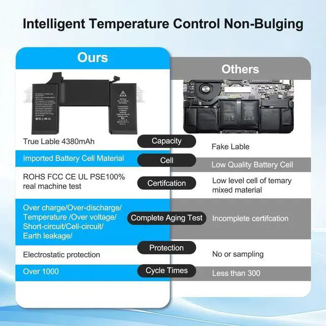 Capacity: 49.9W h/4380mAh. New from Manufacturer. Up to 1000 recharge cycles over the life of the battery ^^ Operating life and certificationUL-/CE-/FCC-/RoHS-Certified/PSE Report for safety.